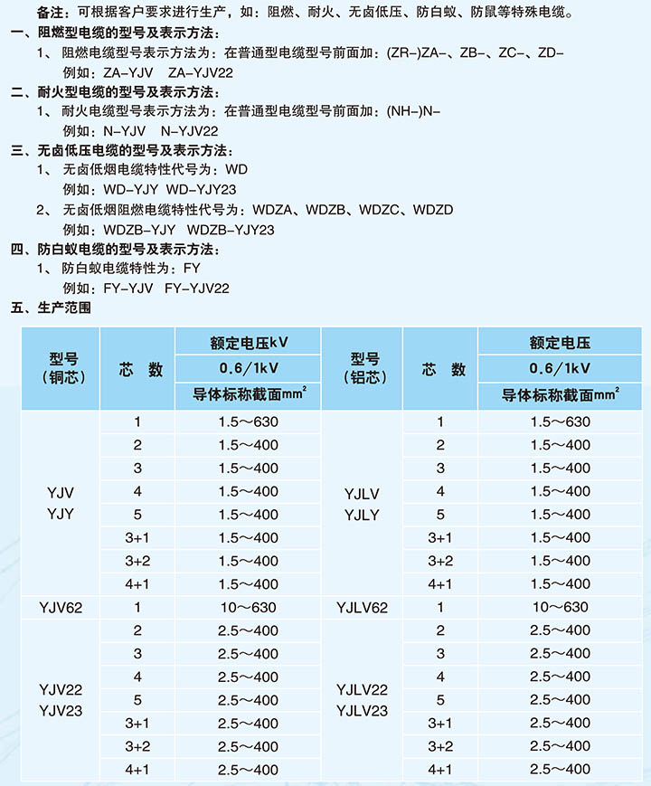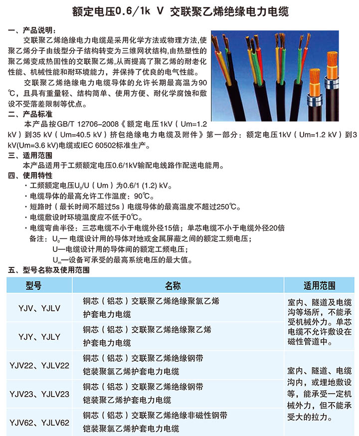 • 額定電壓0.6/1k V 交聯聚乙烯絕緣電力電纜